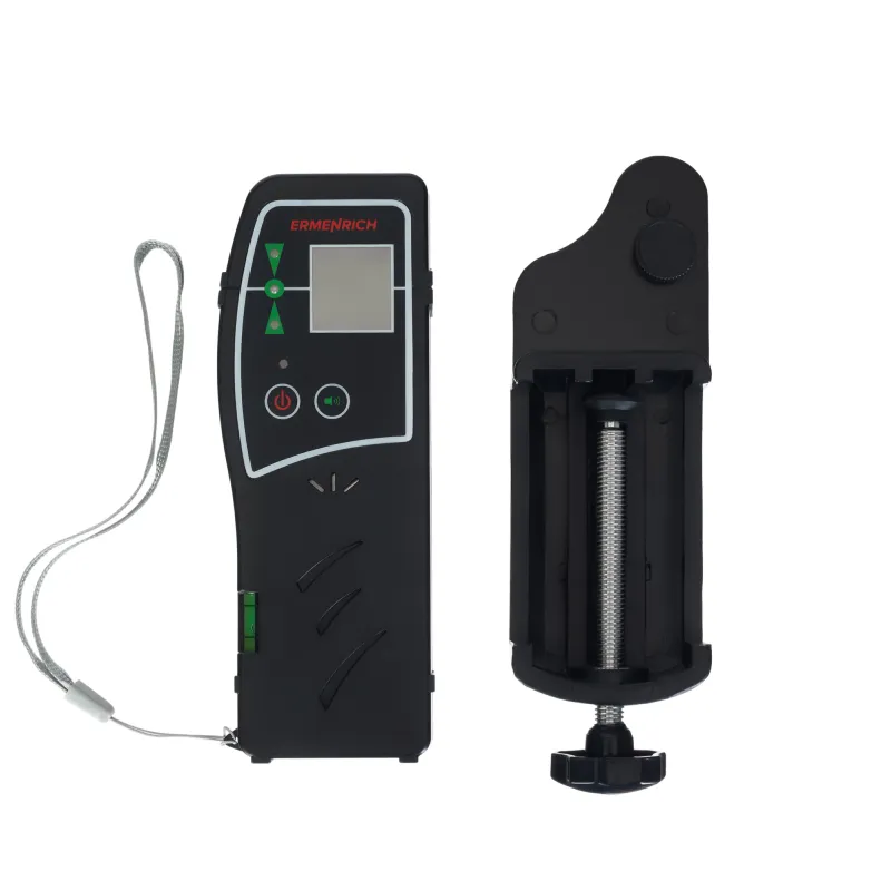 Ermenrich LR30 -это удобный лазерный приемник, который помогает работать с лазерным уровнем там, где сам луч видно плохо: на большой дистанции, в ярком свете или в условиях, когда глазом его не различить. Прибор фиксирует положение луча на расстоянии до 50 метров и работает как с зелёными, так и с красными лазерами. На корпусе расположены световые индикаторы и два пузырьковых уровня, которые помогают быстро выставить устройство в нужное положение. При необходимости приемник можно закрепить на штативе -в корпус встроен разъём 1/4", а также в комплект входит удобный кронштейн.